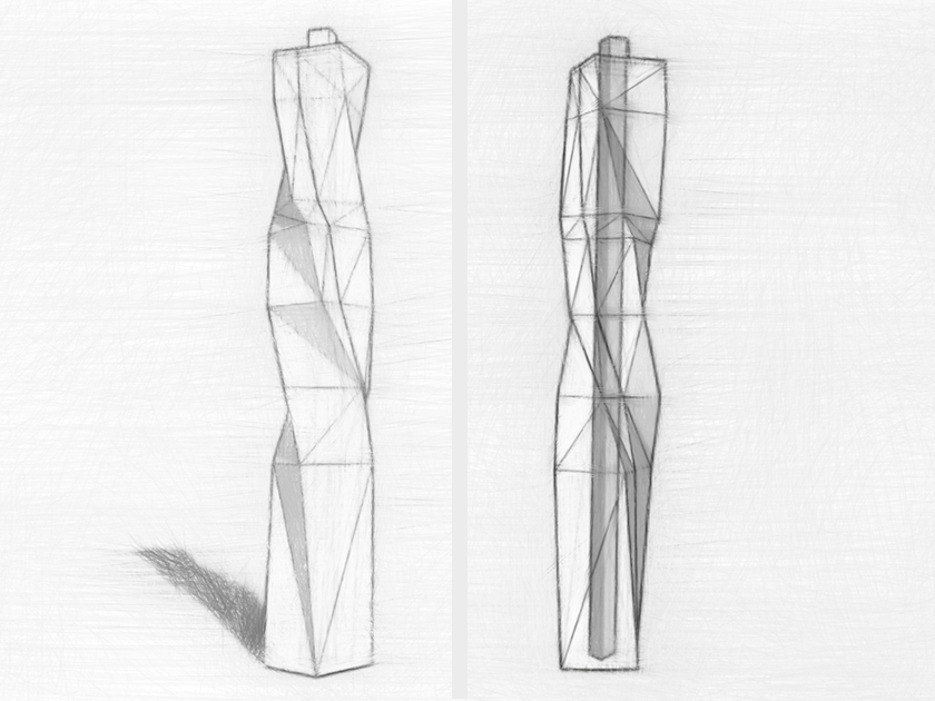 I divided the building into four rooms each denoted by a distinct color scheme representing a certain aspect of my life (family, social relationships, studies, work, mind), and each floor representing a certain point in time, starting from my birth at the ground floor to my flight to America at the top. The structure would deform and rooms would grow and shrink according to what dominated my life at the time. After sketching out some concepts, I modelled and textured the tower in Google Sketchup.