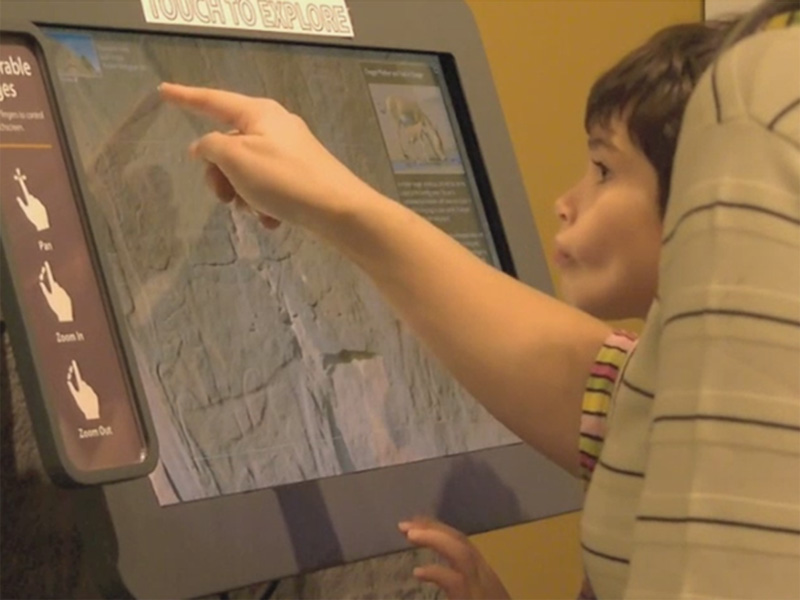 Multitouch based explorations of dynamic visual information spaces present unique user interface and interaction design opportunities and challenges, and the object of the project was to synthesize findings from a series of human centered design studies to optimize navigation, annotation and exploration in a zoomable user interface, and scaffold disciplinary observation and engagement with specific scientific content. Our team conducted expert interviews and contextual inquiries with several museum scientists trying to find out how they identified key features in the petroglyphs and what they valued most as far as educating visitors went. We also conducted card sorting exercises and heuristic evaluations of the existing museum learning software.